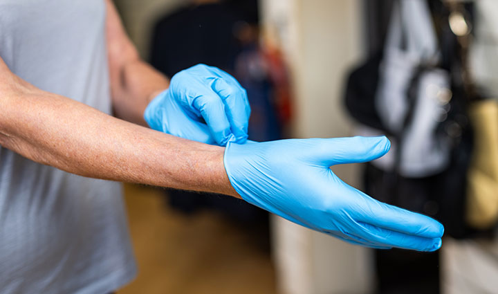When removing gloves, follow the Health and Safety Executive’s guide for safe removal: HSE safe removal of gloves.