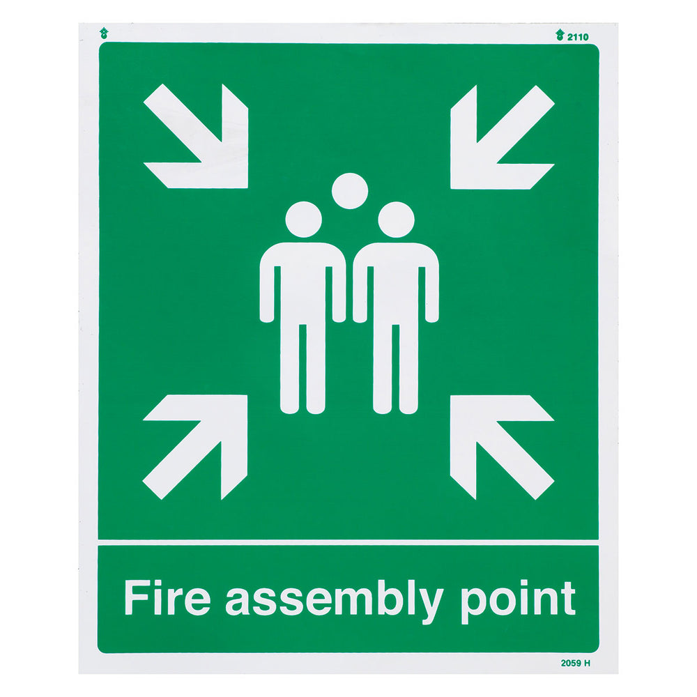 The Fire Assembly Point Vinyl Sign from Caledonia Signs provides clear directional guidance during emergency evacuations, helping people assemble at designated meeting points. This essential health and safety poster clearly identifies designated assembly areas where people should meet after evacuating a building.