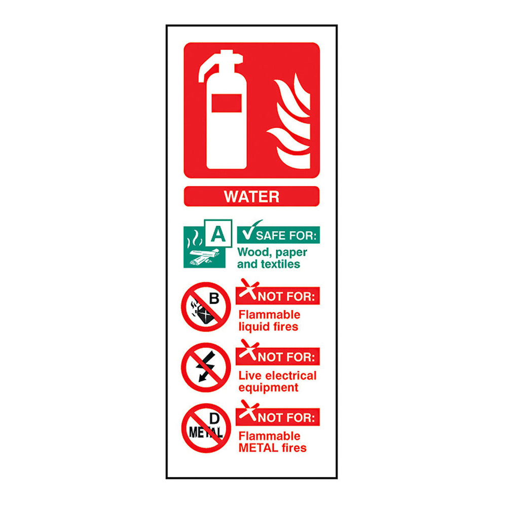 The Water Fire Extinguisher Vinyl Sign is designed to clearly mark the location of water fire extinguishers in workplaces, public buildings, and emergency areas. This essential safety label helps ensure quick identification of fire-fighting equipment during emergencies, potentially saving crucial seconds when they matter most.